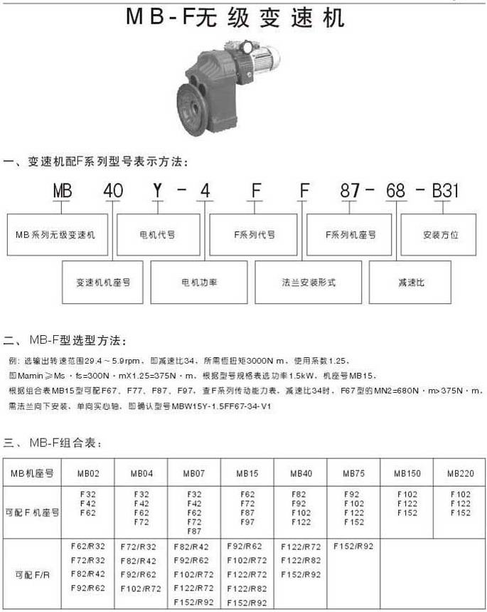 MB-F無級變速機變速機配F系列型號表示法MB-F選型方法MF組合表
