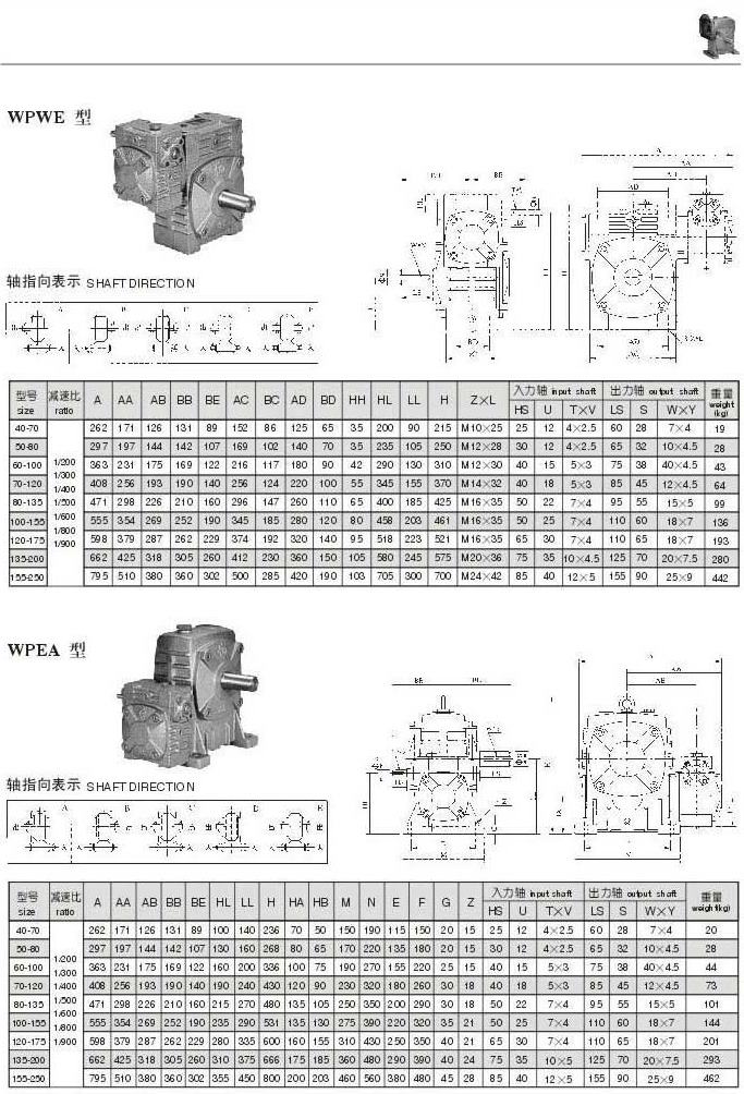 WPWE,WPEA型型號參數圖表