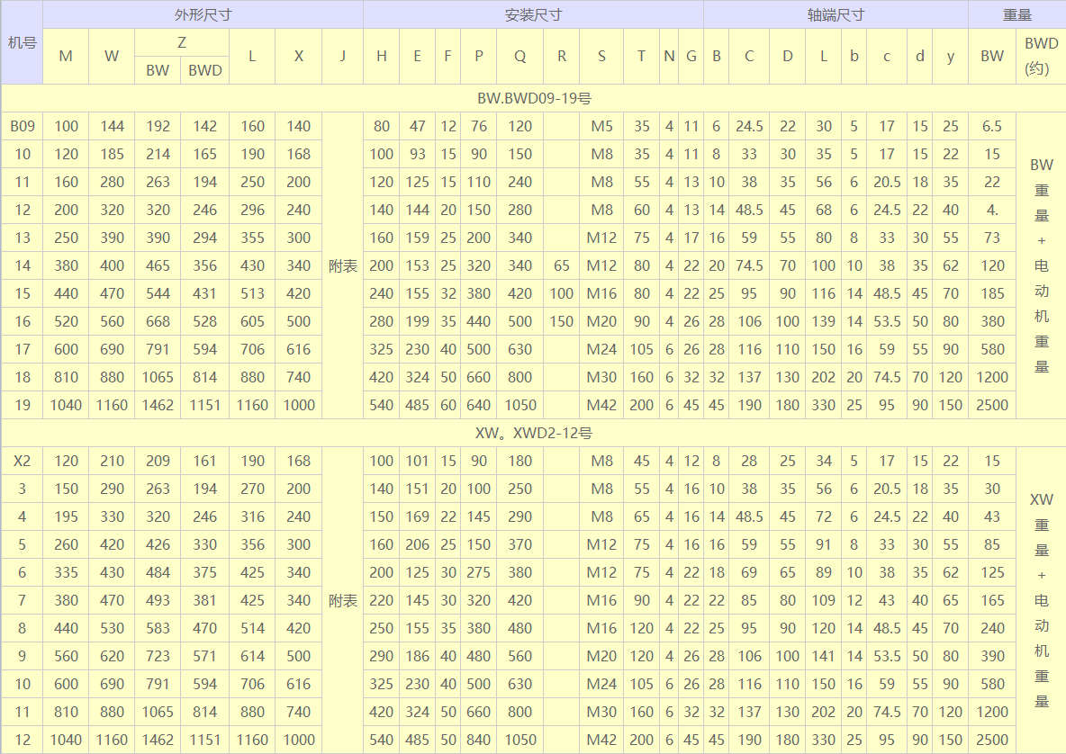 BW.BWD XW.XWD型(單級)擺線針輪減速機(jī)
